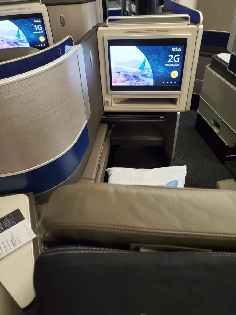 When it came time to board my boarding pass on my phone said the seat was 3C. I was confused as I knew that last night, I picked 22K. Had my flight changed, was my bid accepted? I immediately made a bee line for the counter and ask the attendant, why my seat selection wasn’t honored and was this a better seat or not. As you can note, I am not used to being so far up in front of the airplane. They good naturedly joke and asked if I wanted to go back to the 22K, they could bring me back. I was so stunned; I couldn’t believe it! I was told to walk down the Premier boarding lane as I was group 1. Nothing beats walking into First Class, the treatment is very different. First class seats are roomy and intimate, the flatbeds, the food the champagne and more. You get a real comforter to keep you warm, endless snacks and the screen allows you to comfortably watch your entertainment in a truly relaxed atmosphere. The pilot came out and talked to us about our flight and time to reach our destination. I was such a novice; I spilled my champagne trying to get pictures of the comfortable seating arrangement. Check out these cheesy smiles! Being upgraded is definitely the best part of flying.